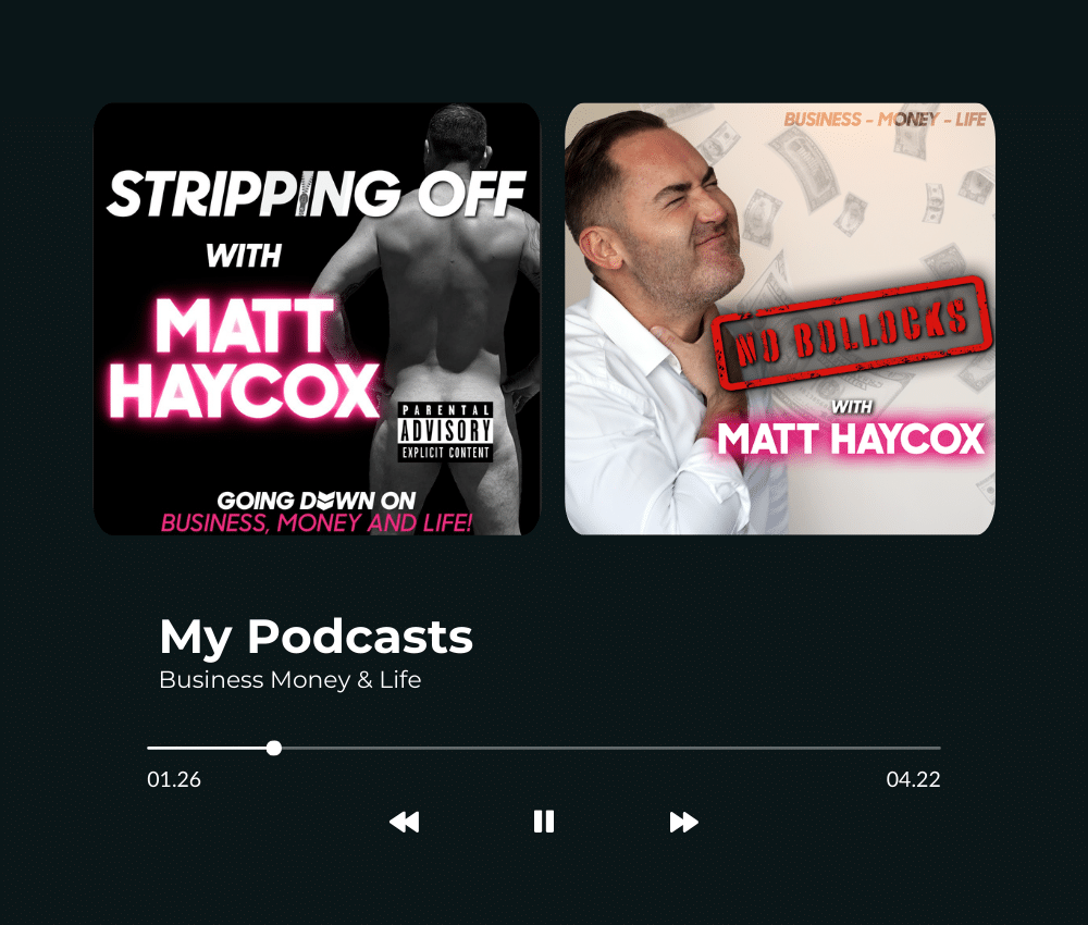 In addition to his business ventures, Matt hosts two podcasts, “Stripping Off with Matt Haycox” and “No Bollocks with Matt Haycox” where he sits down with entrepreneurs, celebrities, and industry experts to uncover stories of success, challenges, and innovation.